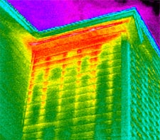 That’s why more and more facility managers are turning to professional infrared building enclosure analysis as the first step in their efforts to reduce escalating energy costs. This cutting-edge thermographic technology delivers a highly accurate and comprehensive picture of the facility’s thermal performance, producing a professional assessment of all components in the building system. It's an invaluable aid to any green design project. Infrared building enclosure testing can also help “get everybody on the same page” by revealing expensive building energy losses with the dramatic visual evidence of full-color thermographic images. When chronic heat and energy losses become visible for all to see, the connection between energy management and financial responsibility becomes undeniable – and funding for effective action becomes available. |